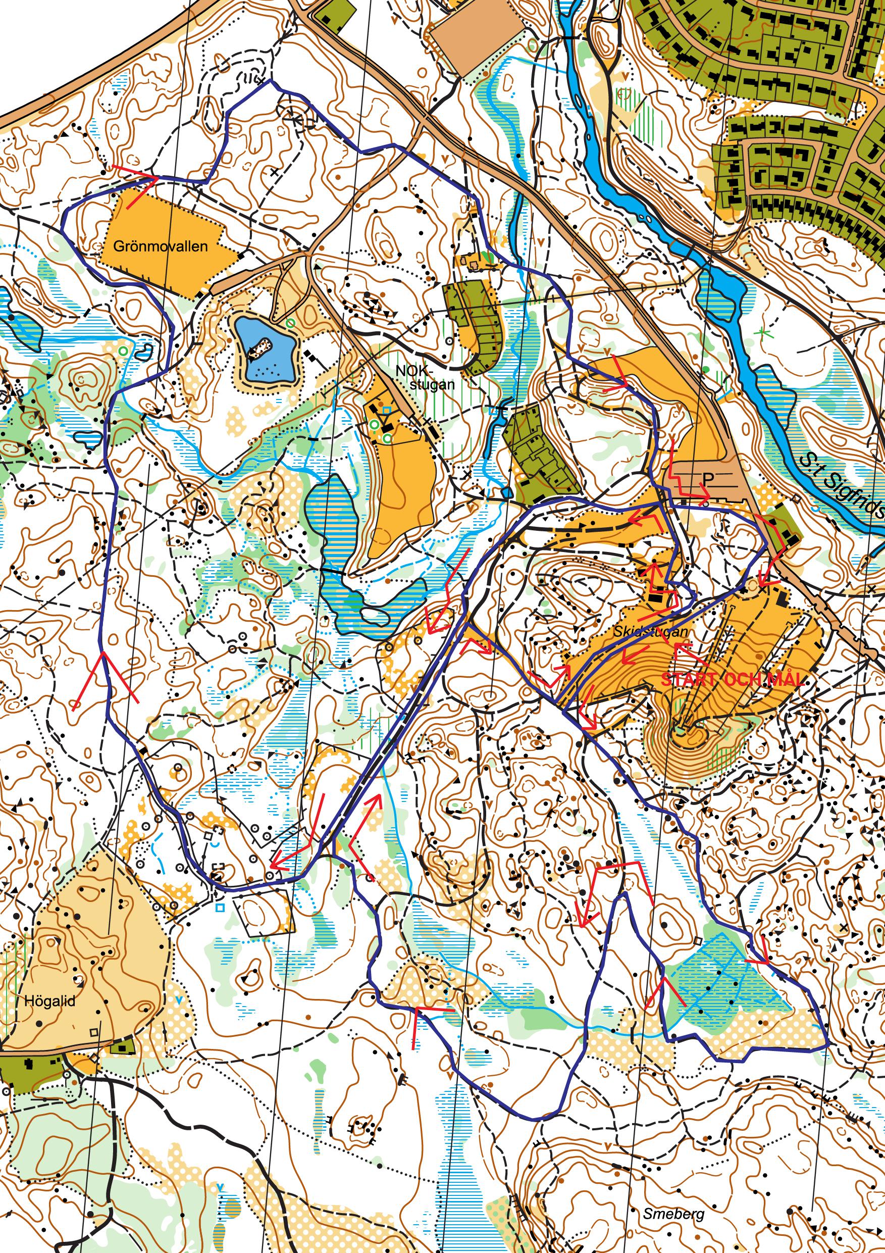 Start och mål vid Nybro Skidklubbs lokal i Svartbäcksmåla. Parkeringsplats finns vid stadion.